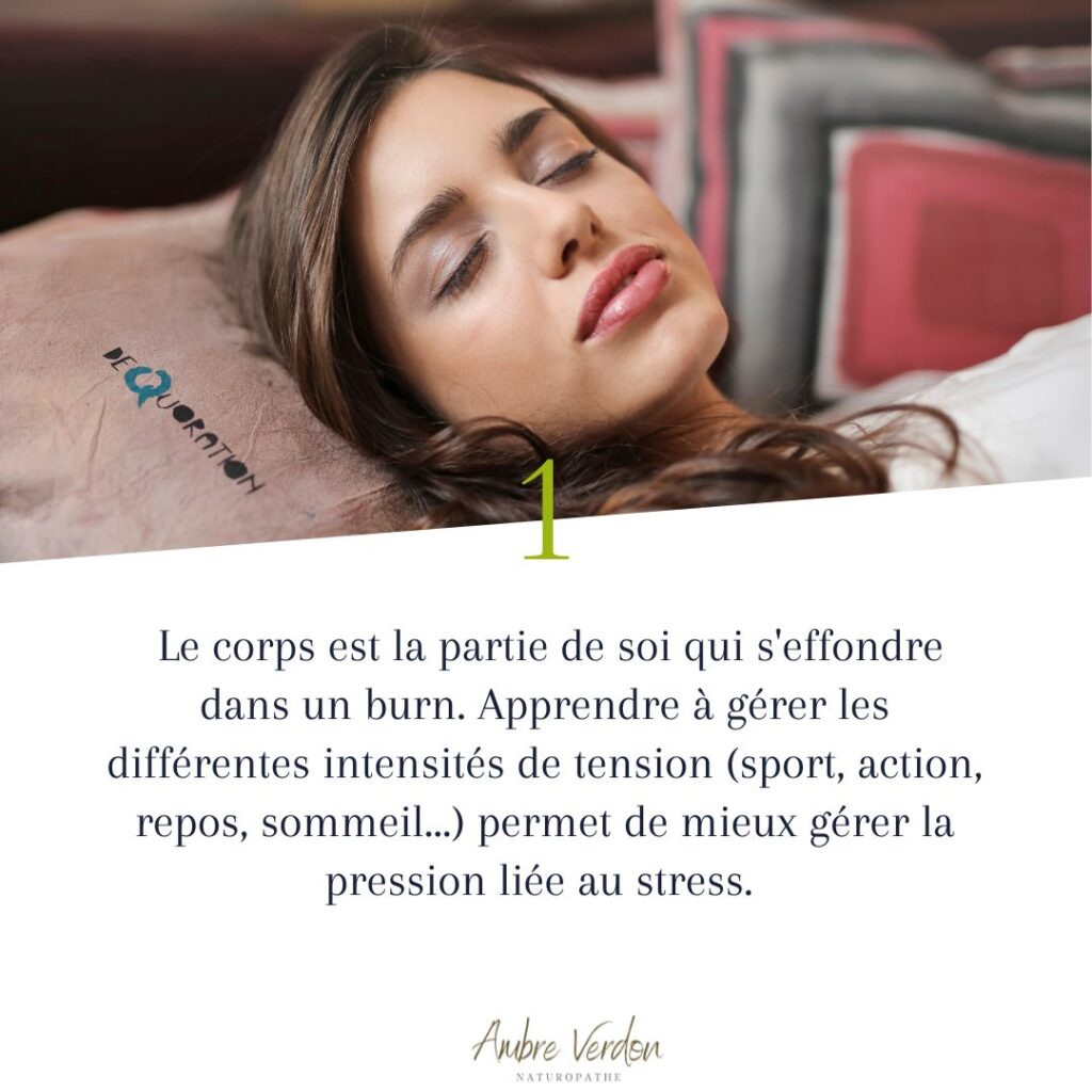 Lorsque l’on réalise un burnout, l’équilibre global de l’organisme est perturbé : l’équilibre des neurotransmetteurs est brisé, certains acides aminés ou certaines vitamines sont en carence, une inflammation métabolique est toujours présente, la digestion est perturbée, les muscles du dos sont sensibles, le sommeil toujours fragile …