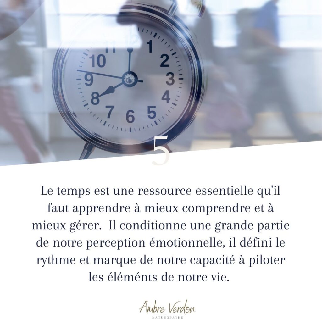 Changer son rapport au temps permet d’éviter de perdre son énergie dans des choses que l’on ne maitrise pas, qui nous échappent, et qui nous submergent. C’est une question que l’on peut se poser : quel est mon rapport au temps ? à quelle vitesse j’avance ? quelle est ma pulsion de mouvement ? Comment je vis ce temps ?